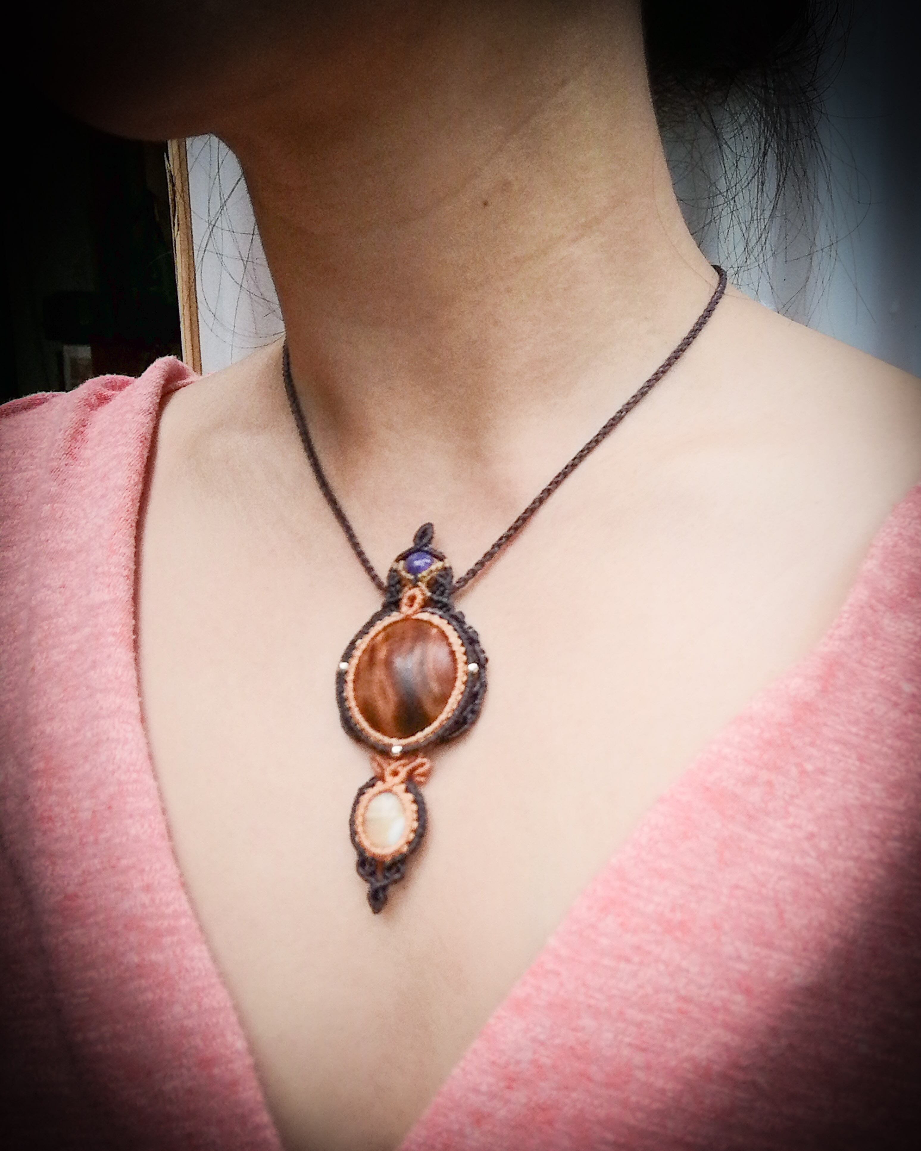 屋久杉と夜行貝を合わせた豪華なペンダント。 山と海の御守、そして3大ヒーリングストーンの1つチャロアイトはとても高い波動の天然石です。